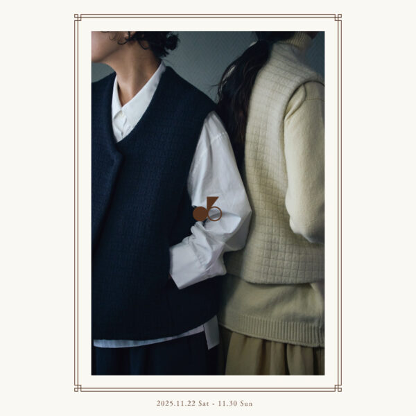 Atelier d’antan POP UP 2025.11.22 (sat) – 11.30 (sun) closed:tue & wed dieciで長年ご紹介しているブランドAtelier d’antan。この度初めてのPOP UPイベントを開催させて頂きます。 会場には丁寧な手仕事で仕立てられたお洋服や、シルバーのアンティークスプーンを用いて制作された「Revivre(ルヴィーヴル)」のバングルやリングが並びます。さらに今回はイベントに合わせて特別にdieci別注アイテムを3型お作り頂きました。この機会に是非Atelier d’antanの世界観をお楽しみ頂けますと幸いです。 *会期中、一部アイテムをオンラインショップにも掲載予定です。 *最終日は17時までとなります。