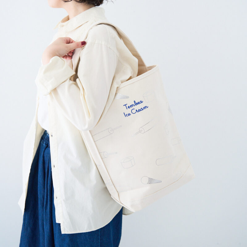 こちらはTEMBEAの中でも定番の「BAGUETTE TOTE」にアイスクリーム柄がデザインされたバッグです。