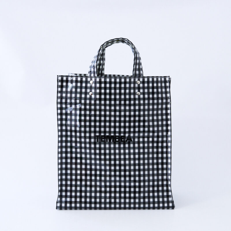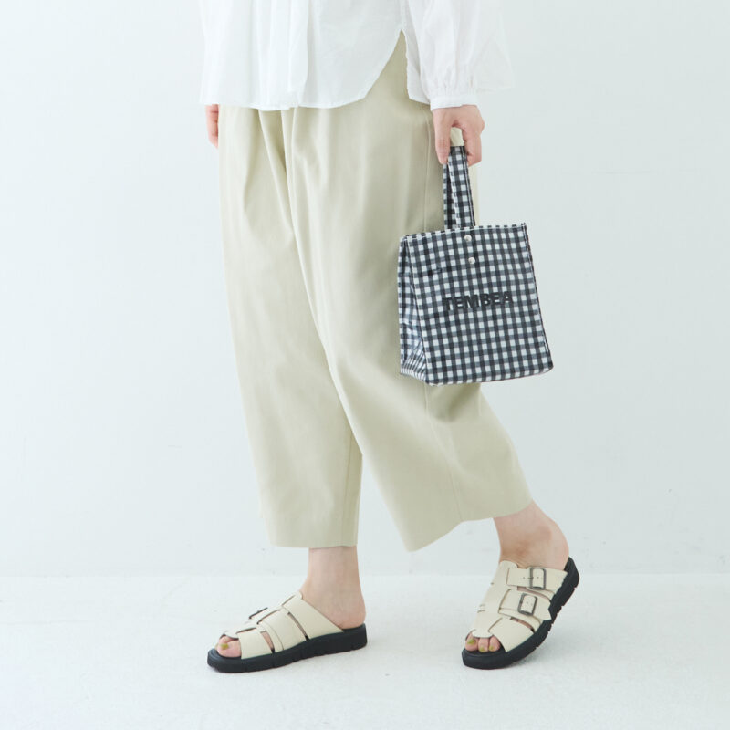 無地は11号のキャンバスに、チェック柄はシャツ生地に、それぞれPVC(ポリ塩化ビニール)のコーティングを施しており、ラフに見えても防水性・耐久性は抜群。ちょっとしたお出かけや日用品の持ち運びにぴったりで、カジュアルにもキレイめな装いにも合わせやすい万能なバッグです。