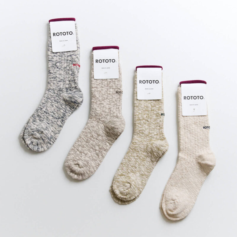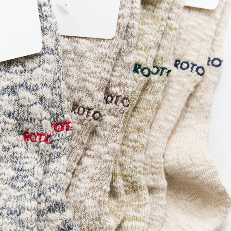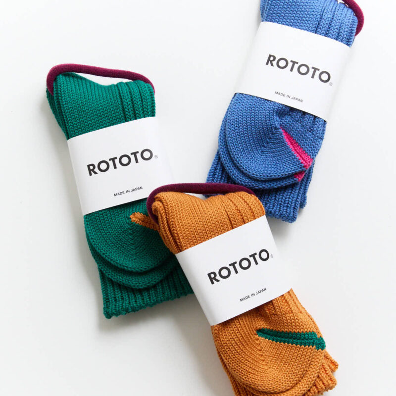 古くから靴下の生産地として知られる奈良県広陵町を中心に、職人の手によって一足一足丁寧に編まれているROTOTOの靴下。kyutaro店1Fとオンラインショップには、ROTOTOの新商品が入荷しております。