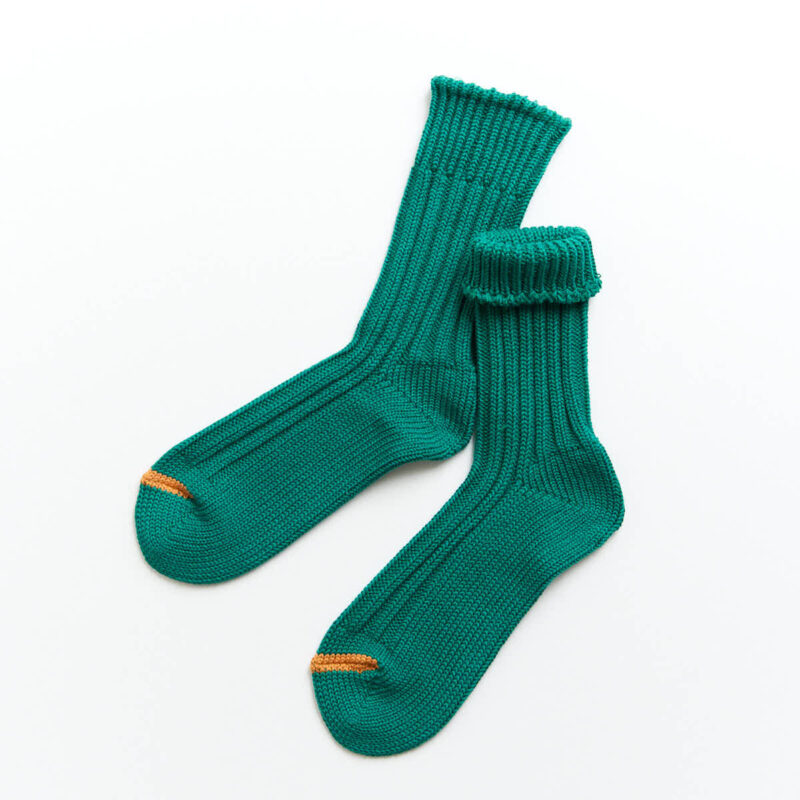 今では扱うことのできる職人が少なくなってしまった、希少な旧式のローゲージ編み機によって編み上げられたリブソックス。