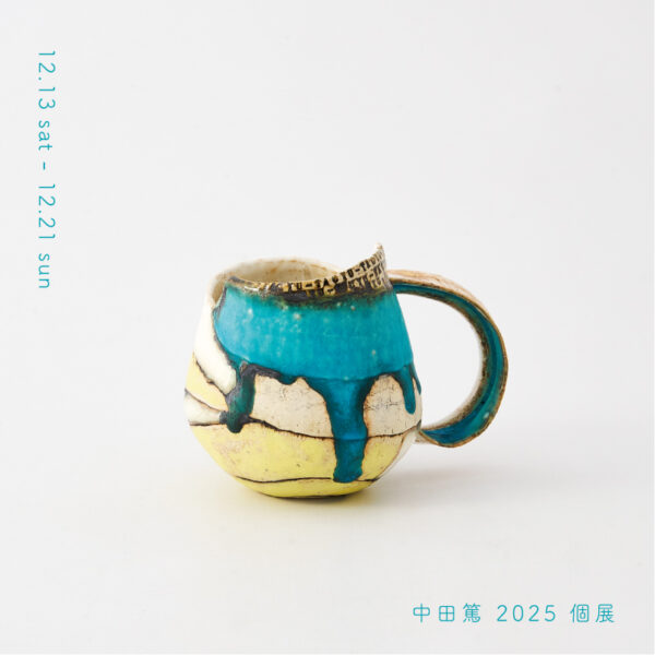 三重県に工房を構えて作陶されている、中田篤さんの個展を開催いたします。 今回は「原点を見つめ直す」という思索を軸とした、中田さん自身のこれまでの歩みを辿るような作品をご覧いただけます。一点一点に異なる色、形、質感があり、まるで生き物であるかのように、その作品には中田さんの感性が生き生きと表れています。 中田さんは、12月14日(日)にご在廊される予定です。 直接お話を聞きながら作品をご覧いただける貴重な機会となりますので、ぜひお見逃しのないようdieci kyutaro3Fにお越しくださいませ。 「中田篤 2025 個展」 2025.12.13 sat — 12.21 mon at dieci kyutaro 3F ※中田さんは14日(日)にご在廊予定です。 ※最終日12月21日(日)は17時までとなります。 dieci kyutaro 〒541-0056 大阪市中央区久太郎町2-4-13 堺筋本町駅11番出口より徒歩2分 Tell 06-4256-4485 Open 12:00-19:00/11:00-18:00(日祝) Closed 火・水